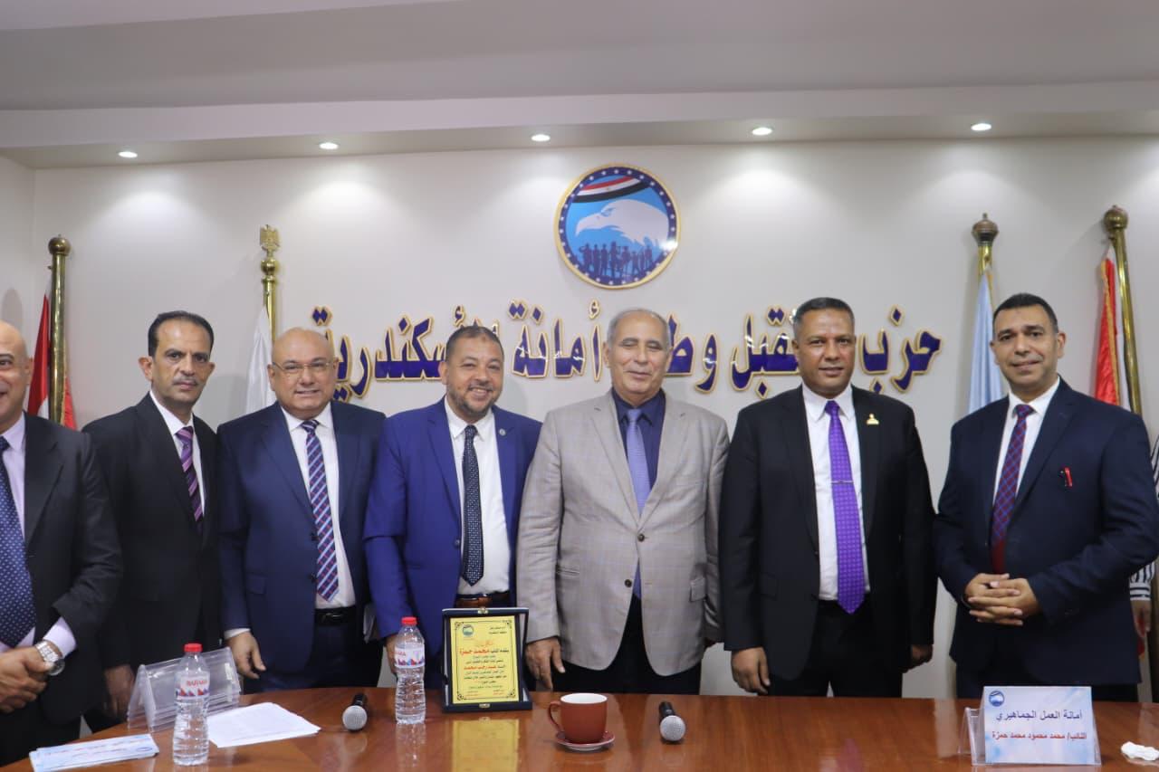بحضور الأستاذ الدكتور سعيد عبدالعزيز أمين الحزب بالإسكندرية، والأستاذ حسن خاطر أمين التنظيم، والنـائـب مـحـمـد حـمـزه عضو مجلس الشيوخ، وأمين العمل الجماهيري بالمحافظة والأمناء المساعدين لأمانة العمل الجماهيري ،وهيئة مكتب العمل الجماهيري بالأسكندرية .