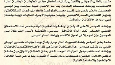 رفض المجلس الأعلى للدولة تصويت مجلس النواب اليوم الاثنين على استكمال مجلس المفوضية الوطنية العليا للانتخابات ،وزيادة مرتبات الجيش الليبي.…