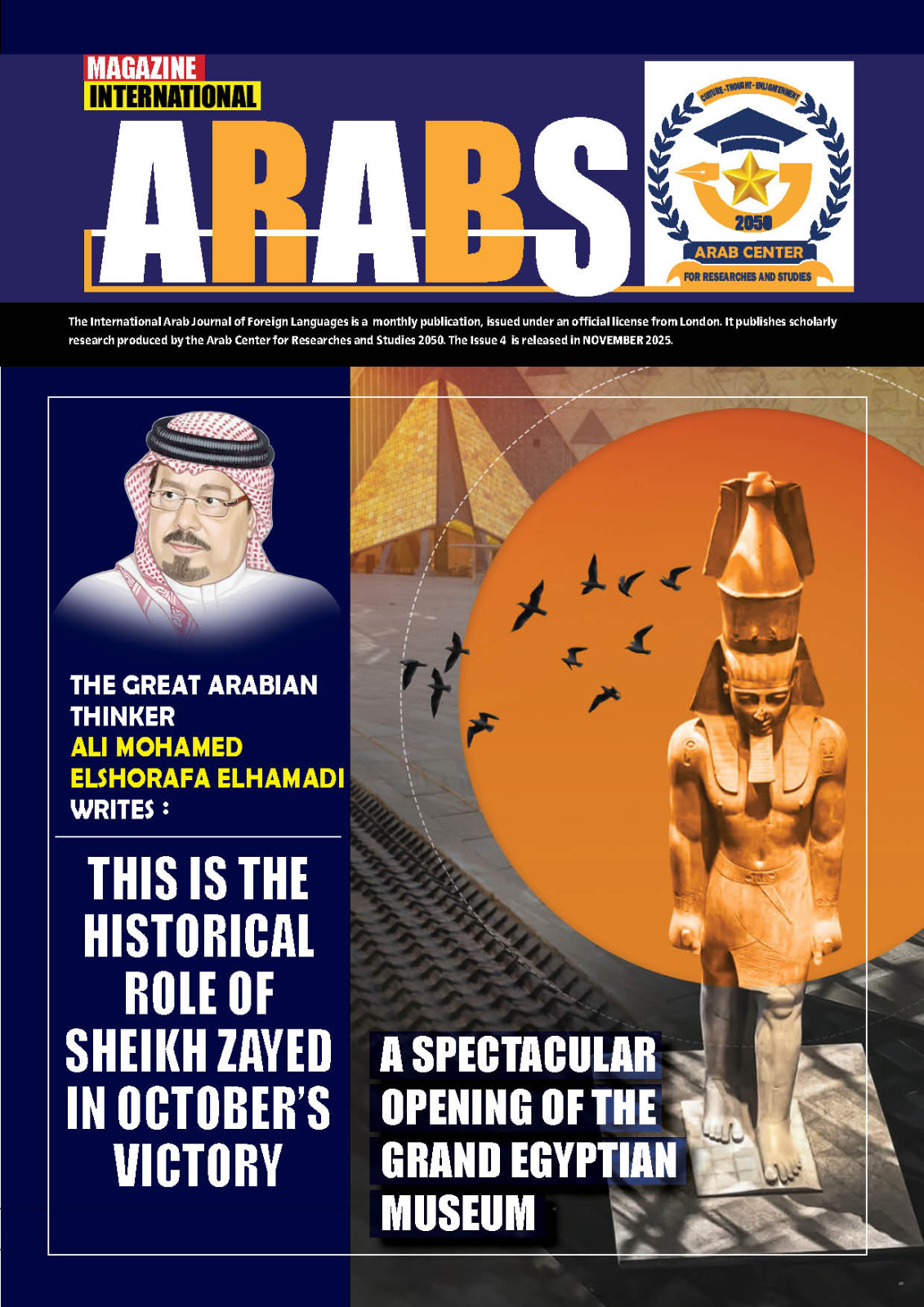 أعلن مركز “العرب” للأبحاث والدراسات 2050، عن صدور العدد الرابع من مجلة «العرب» الطبعة الدولية (نوفمبر 2025)، حافلًا بملفات فكرية وثقافية ودبلوماسية مهمة تعكس الحضور العربي المتجدد في مجالات الفكر والتنمية والحوار الحضاري.