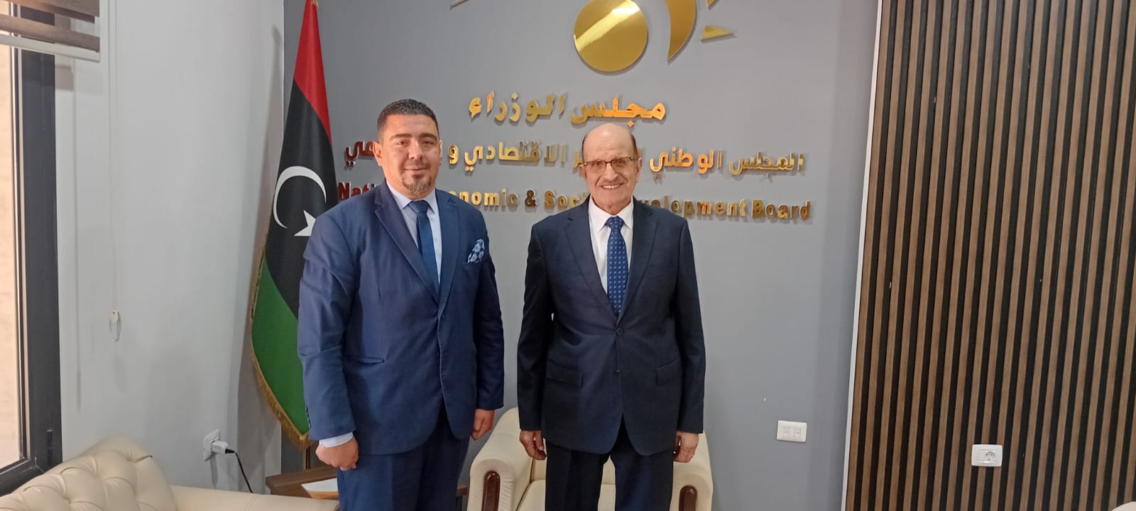عقد صباح اليوم بالعاصمة الليبية طرابلس لقاء مشترك ضم السيد مدير المجلس الوطنى للتطوير الاقتصادى والاجتماعى الدكتور محمود الفطيسى والسيد المستشار الاعلامى للوكالة المغاربية للشباب جمال عبدالحكيم