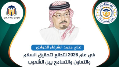 علي محمد الشرفاء الحمادي يكتب.. نتطلع لتحقيق السلام والتعاون والتسامح بين الناس في 2026