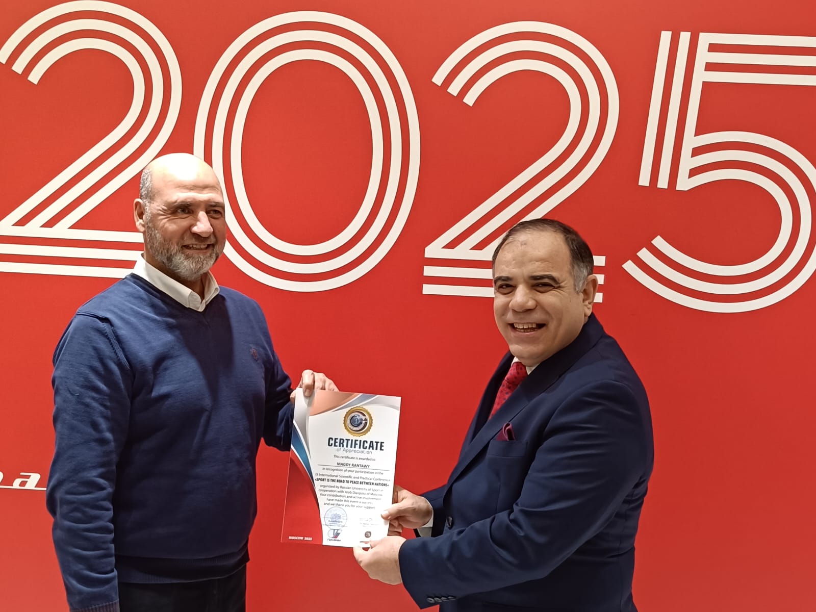 وأهدى رئيس اللجنة المنظمة، وفد مؤسسة رسالة السلام العالمية، الذي يرأسه الكاتب الصحفي مجدي طنطاوي، المدير العام للمؤسسة، وعضوية الباحث محمد فتحي الشريف، رئيس مركز العرب للأبحاث والدراسات وعضو مجلس إدارة المؤسسة، إلى جانب الدكتور محمد يحيى غيدة، مسؤول لجنة الأبحاث بالمؤسسة ونائب رئيس مركز العرب، شهادات تقدير نظير مشاركتهم الفعالة والتي أثرت حالة النقاش في جلسات المؤتمر.