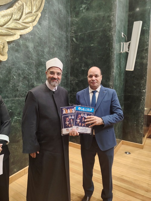 في إطار الحراك الفكري والثقافي الذي يقوده مركز العرب للدراسات، قدّم رئيس المركز محمد فتحي الشريف نسخة من مجلة “العرب” التي صدرت بعنوان “رؤية الشرفاء الحمادي للتكامل العربي” إلى الدكتور عمر الورداني، رئيس لجنة الشؤون الدينية بمجلس النواب المصري وأمين الفتوى ومدير إدارة التدريب بـدار الإفتاء المصرية، وذلك على هامش أحد الفعاليات الفكرية بالقاهرة.