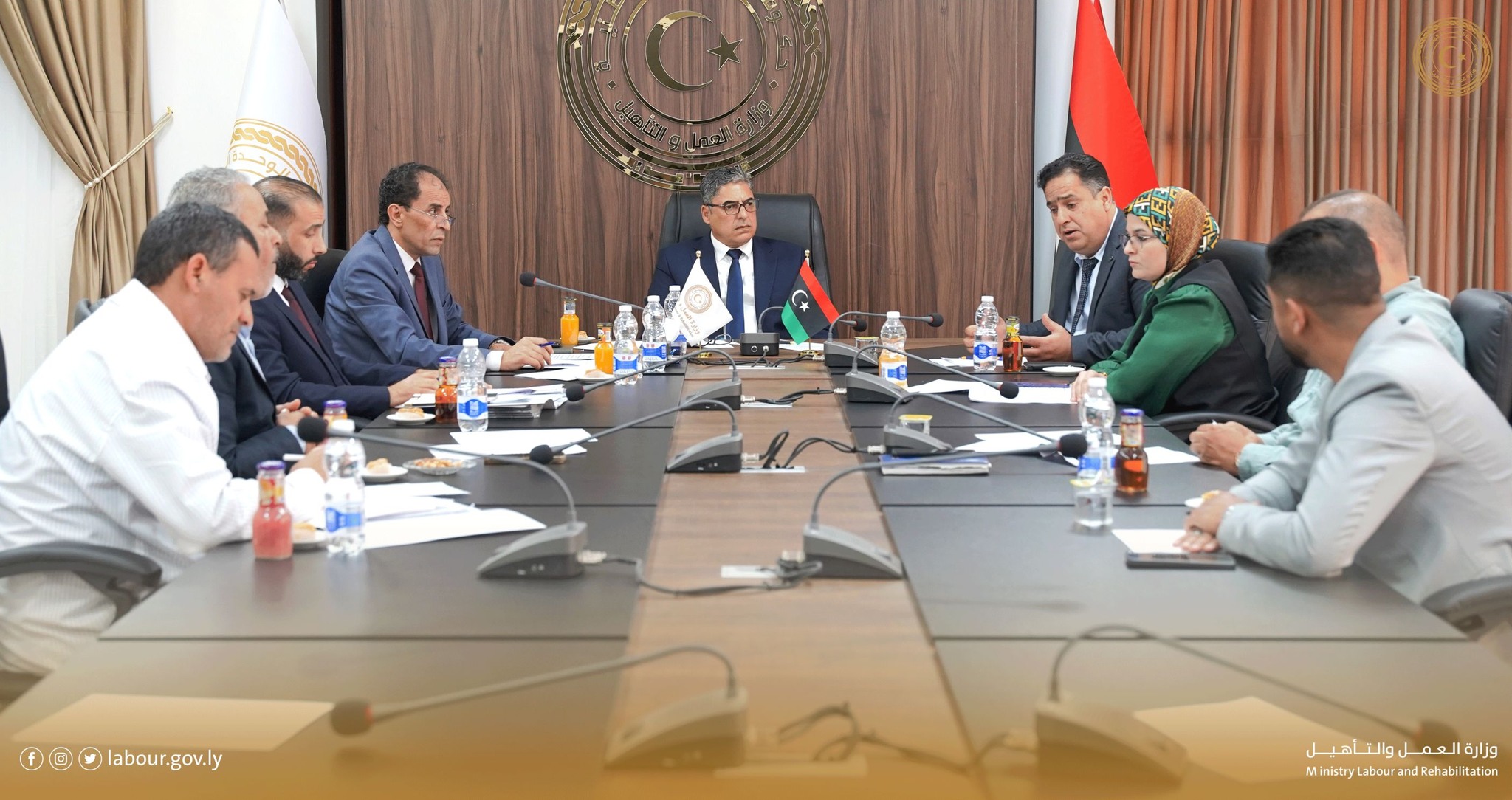 عقدت اللجنة الاستشارية للعمل والتأهيل المهني بوزارة العمل والتأهيل اجتماعها الثالث، برئاسة وكيل الوزارة الدكتور علي الهادي الماقوري، وبحضور أعضاء اللجنة من مديري الإدارات والمكاتب بالوزارة، ومندوبين عن الصندوق الاشتراكي، وذلك لبحث ملفات تنظيم سوق العمل وحماية الحقوق الوطنية.