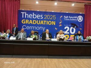 وعقب ذلك تحدث الأستاذ الدكتور صفوت النحاس رئيس المركز الوطنى للتدريب والتعليم الذى وجه التحية للاستاذ الدكتور صديق عفيفى والمنصة والحاضرين ووجه كلمة إلى الخريجين أكد فيها أنهم حاليا فى بداية الطريق واى عثرة تقابلك لابد أن تنهض منها وعليك أن تشتغل على نفسك وتطور نفسك لمواكبة التطور في سوق العمل واضاف أنه من واقع خبراته فإن خريجى اكاديمية طيبة متميزين فى كافة مواقع وإدارات العمل ولديهم إصرار على العمل والنجاح والجودة ولديهم خلق والتزام