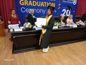 ووجهت التحية إلى اكاديمية طيبة وأولياء الأمور وزملائها الخريجين