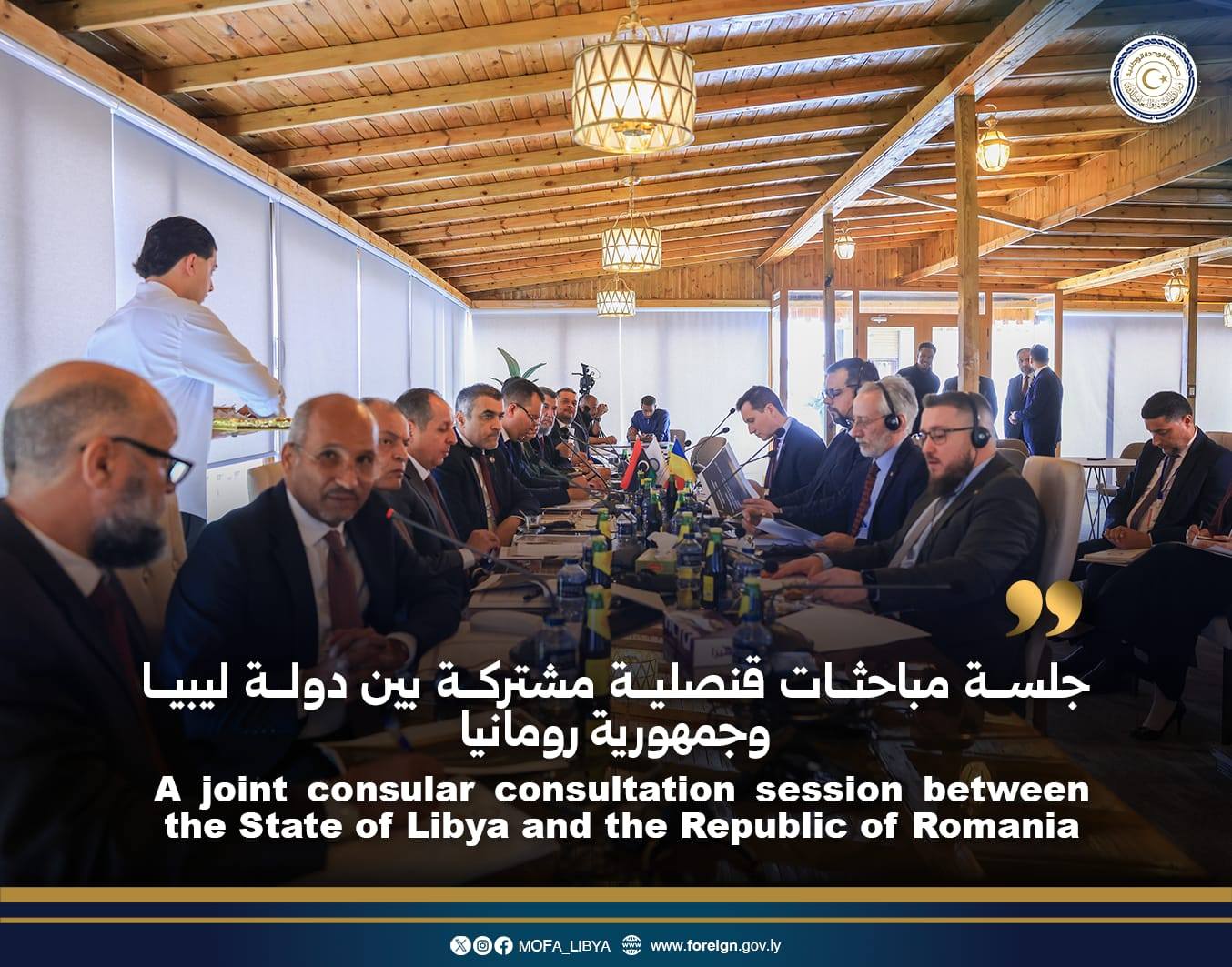 عقدت أمس الاحد جلسة مباحثات قنصلية ثنائية مشتركة بين دولة ليبيا وجمهورية رومانيا، برئاسة مدير إدارة الشؤون القنصلية ” محمود علي الزرقاني “، تمهيدا لاستئناف عمل سفارة جمهورية رومانيا في طرابلس .