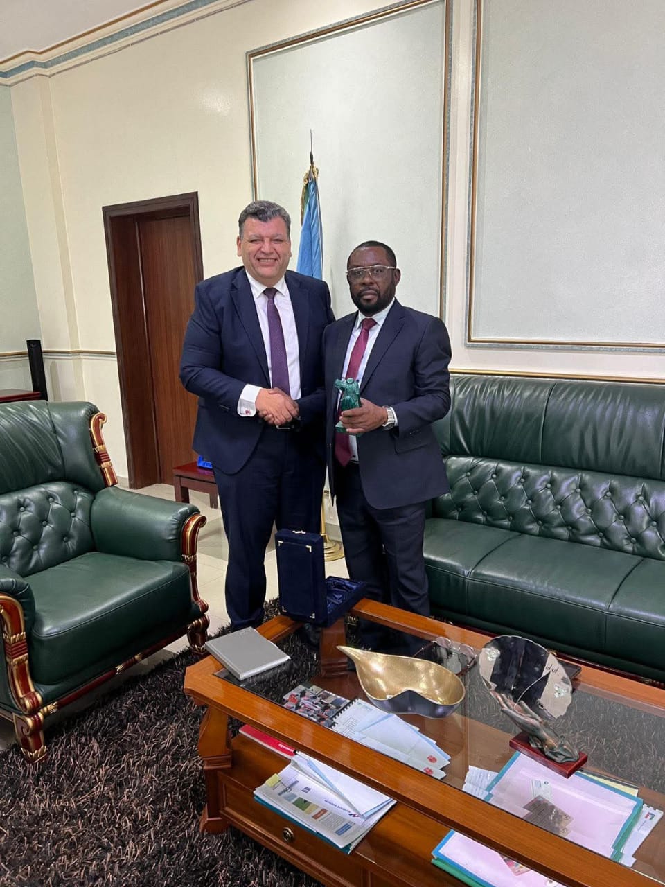 عقد السفير أحمد فريد، سفير جمهورية مصر العربية لدى غينيا الاستوائية، لقاءً مع وزير الدفاع الغيني السيد فيكتوريانو بيبانغ نسوي أوكومو، بمقر وزارة الدفاع في العاصمة مالابو، حيث بحث الجانبان سبل تعزيز التعاون المشترك في مختلف المجالات، وعلى رأسها الدفاع والصحة.
