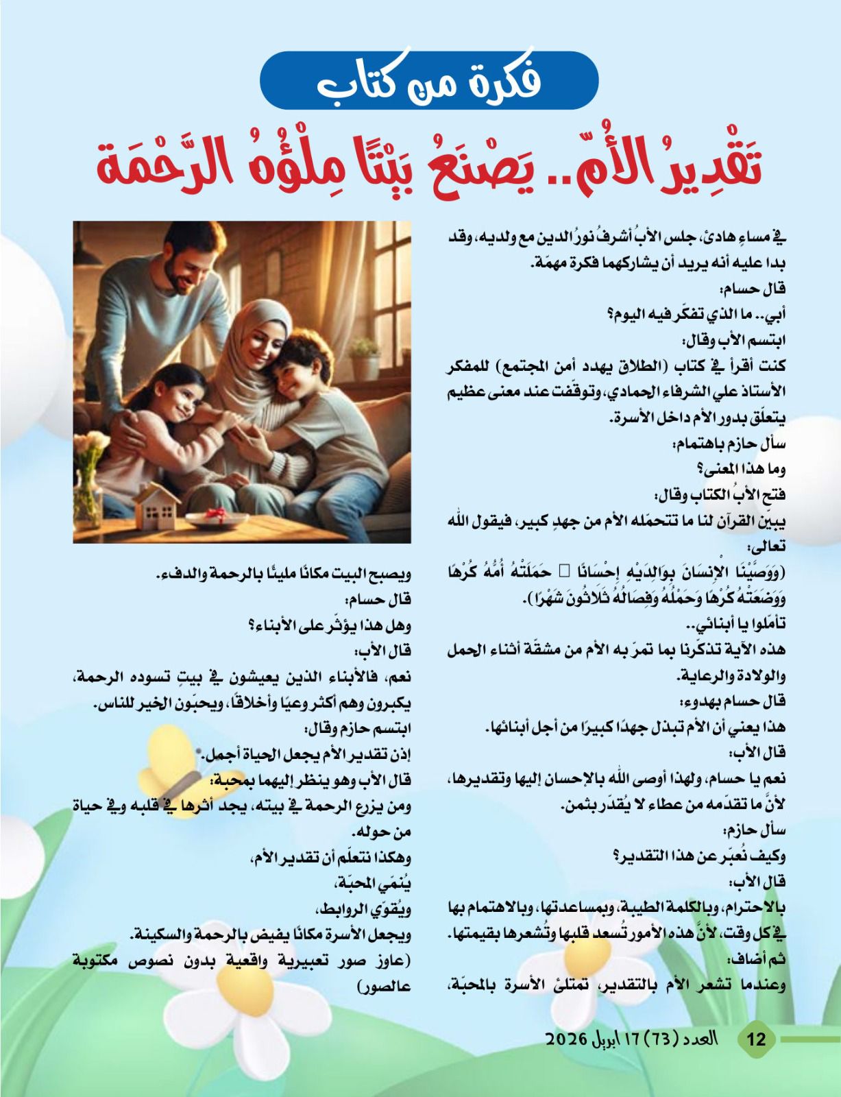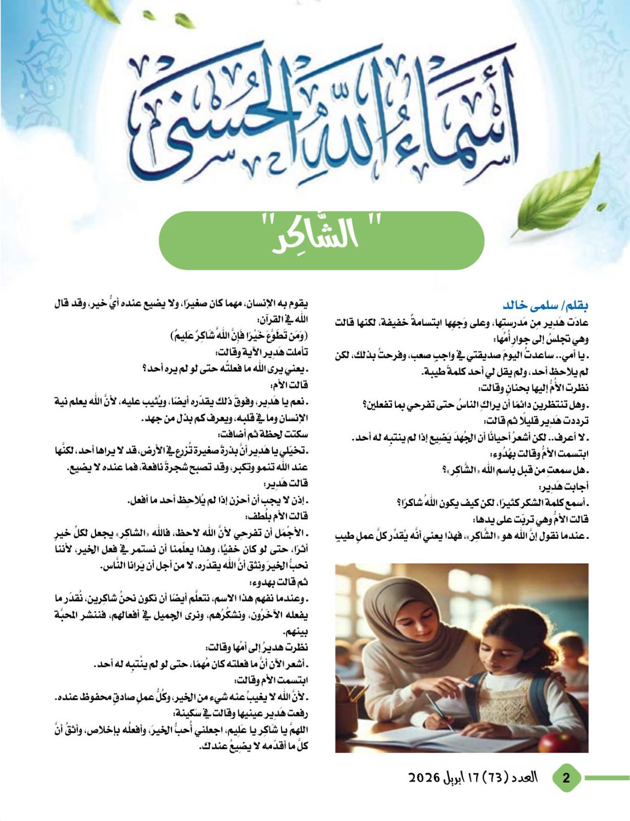 صدر اليوم الجمعة ١٧ أبريل ٢٠٢٦م العدد ٧٣ من مجلة أطفالنا المتخصصة التي تصدر عن مؤسسة رسالة السلام العالمية