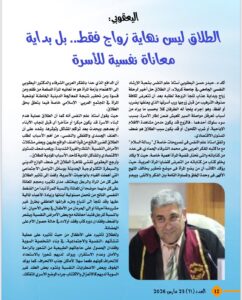 يناقش العدد ملفًا فكريًا ومجتمعيًا خاصًا يناقش قضايا الأسرة والطلاق وحقوق المرأة من زوايا متعددة، في معالجة تجمع بين البعد الديني والاجتماعي والقانوني والنفسي.
