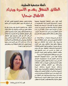 ويضم العدد مجموعة من المقالات والمواد الصحفية التي تناقش القضية نفسها من زوايا متعددة، من بينها: توثيق الطلاق بوصفه خطوة لحماية النساء من الفوضى والفتاوى المتشددة، وتحليلات تربط أزمة الطلاق في الوطن العربي بعوامل مثل خلل التربية والضغوط المادية، فضلًا عن تناول أثر ضعف الوازع القيمي وهيمنة وسائل التواصل الاجتماعي في تصاعد النزاعات الأسرية، إلى جانب تسليط الضوء على مخاطر الطلاق الشفهي وما يتركه من آثار مدمرة على النساء والأطفال.
