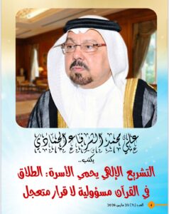 تصدر العدد مقال افتتاحي للمفكر العربي الاستاذ علي محمد الشرفاء الحمادي بعنوان: «التشريع الإلهي يحمي الأسرة: الطلاق في القرآن مسؤولية لا قرار متعجل»، بما يضع إطارًا فكريًا واضحًا للملف الرئيسي للعدد.
