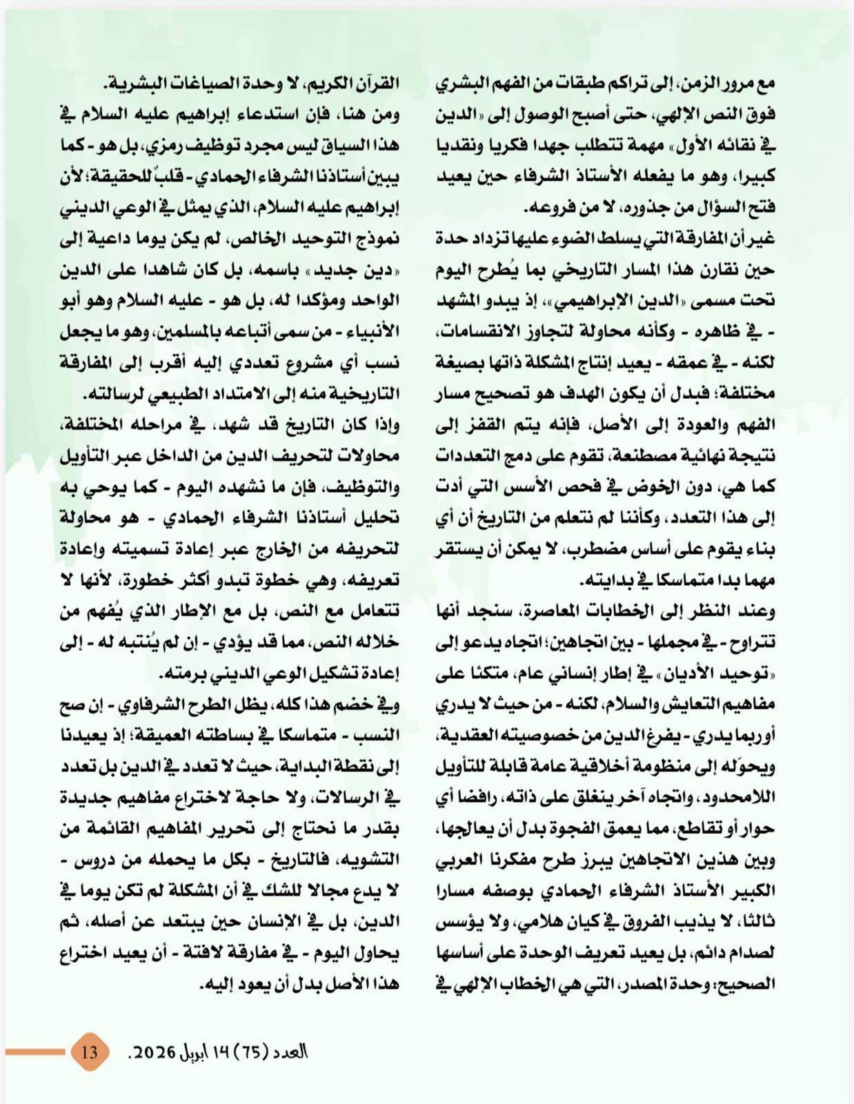 -الدين الإبراهيمى تسمية باطلة لأهداف سياسية