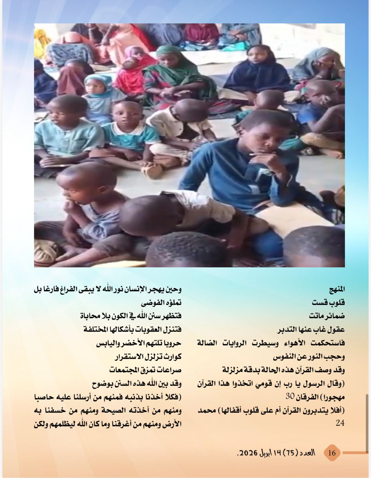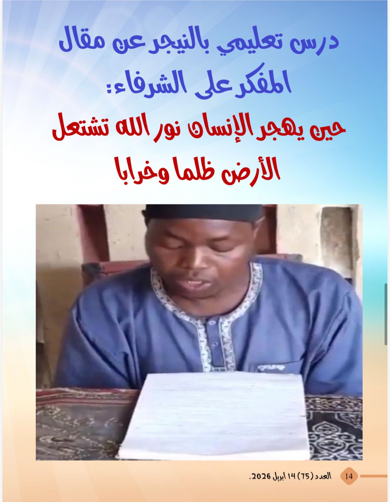 -درس تعليمي بالنيجر عن مقال المفكر على الشرفاء:حين يهجر الإنسان نور الله تشتعل الأرض ظلما وخرابا