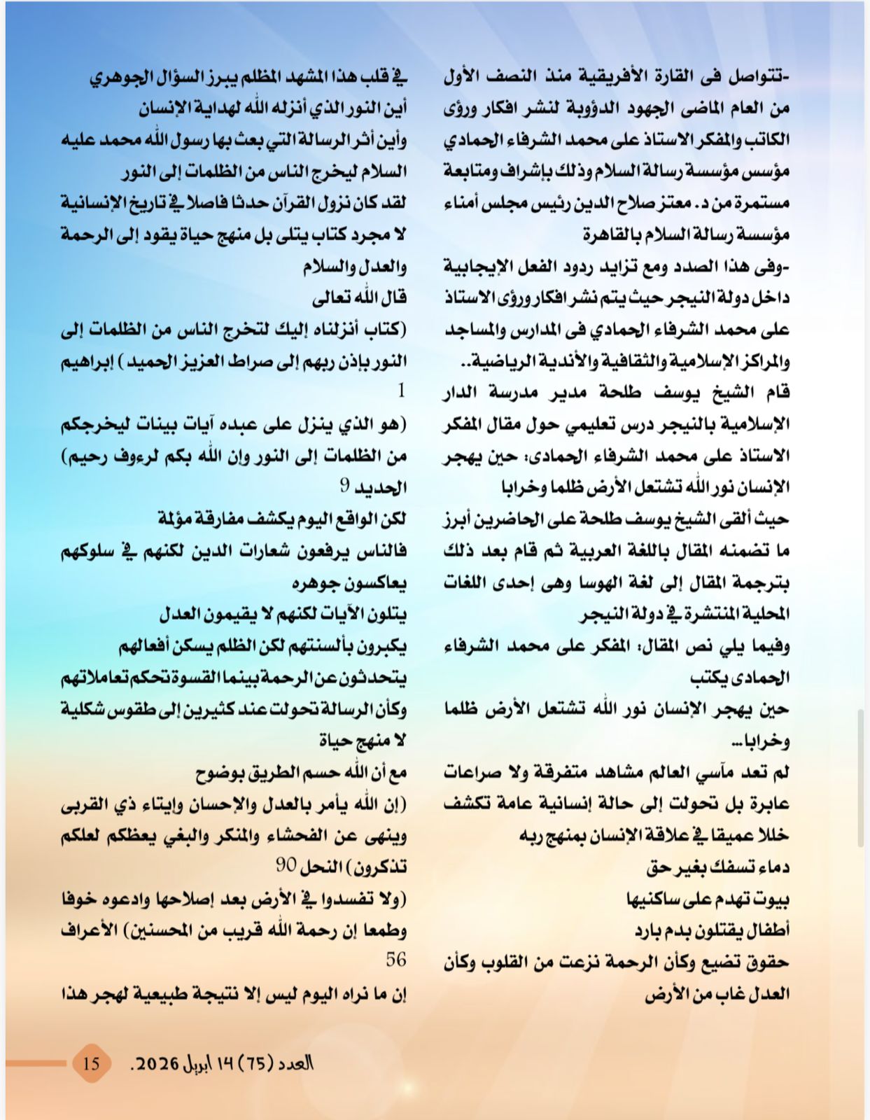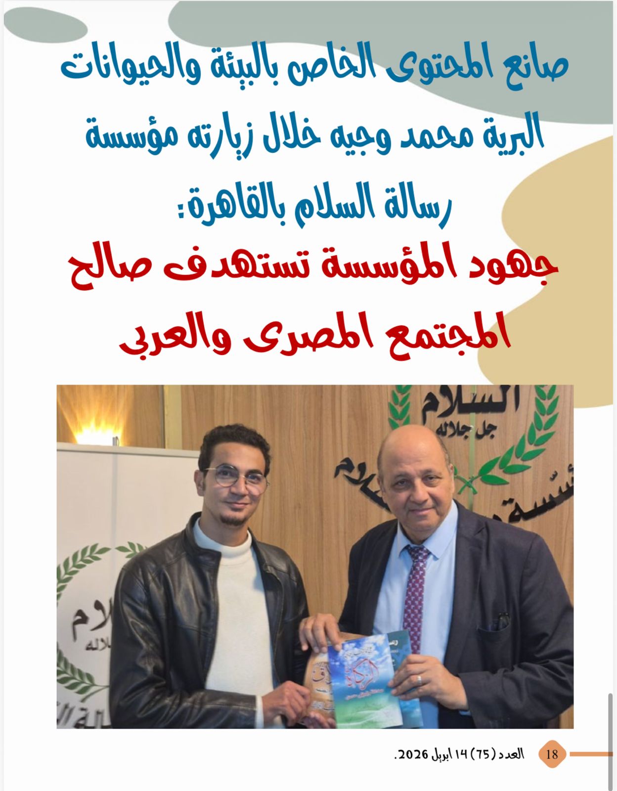 صدر اليوم الثلاثاء 14 أبريل 2026 العدد الجديد من مجلة شبابنا التى تصدر عن مؤسسة رسالة السلام العالمية