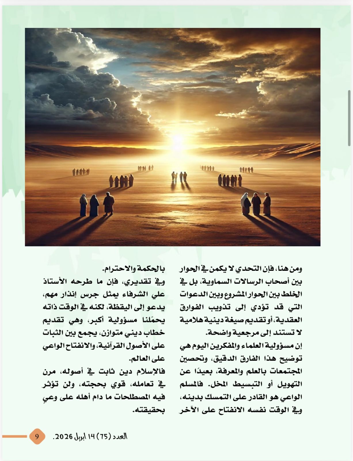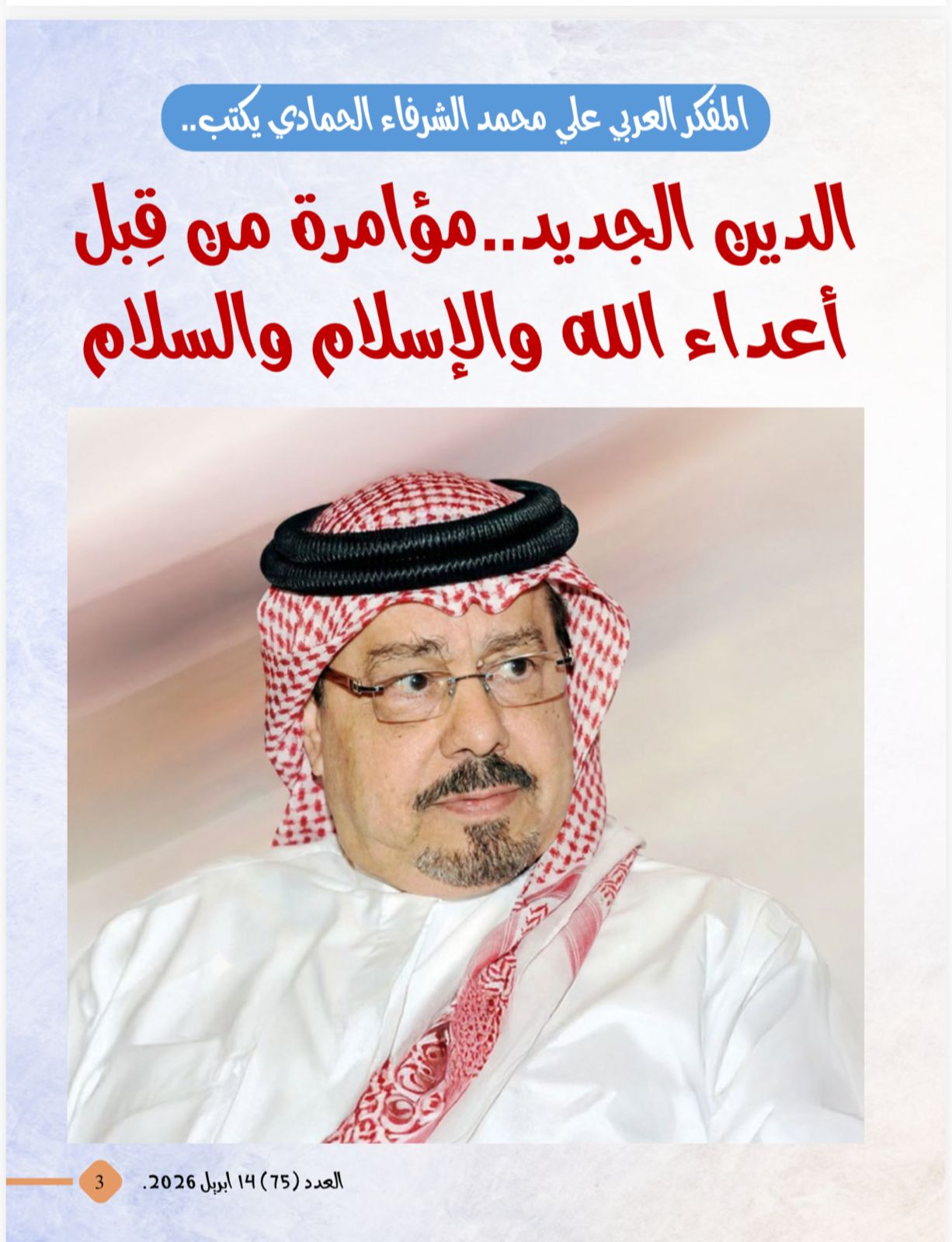 تصدر العدد مقال تحت عنوان المفكر العربي