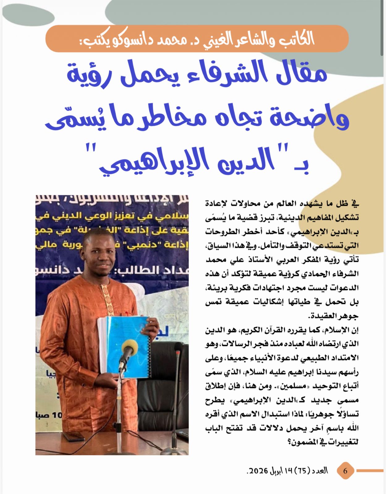 -الكاتب والشاعر الغينى د.محمد دانسوكو يكتب :مقال الشرفاء يحمل رؤية واضحة تجاه مخاطر ما يسمى ب الدين الإبراهيمى