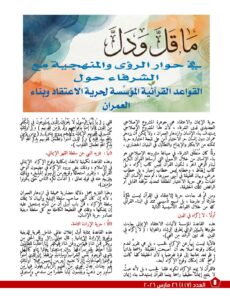ليعيد فتح واحدةٍ من أكثر القضايا حساسيةً في المجال الديني والفكري، وهي قضية حرية الاعتقاد ، وما يتصل بها من مراجعةٍ لموقع الرواية البشرية، وحدود التفسير، وطبيعة الخلاف الديني، وموقع القرآن باعتباره المرجعية العليا للإسلام. ويطرح العدد، عبر مادته الرئيسية ومقالاته المتتابعة، معالجةً هادئة لكن حاسمة، تنطلق من أن العلاقة بين الإنسان وربه قائمة على البلاغ والاختيار والمسؤولية، لا على الإكراه أو الوصاية أو احتكار النجاة.
