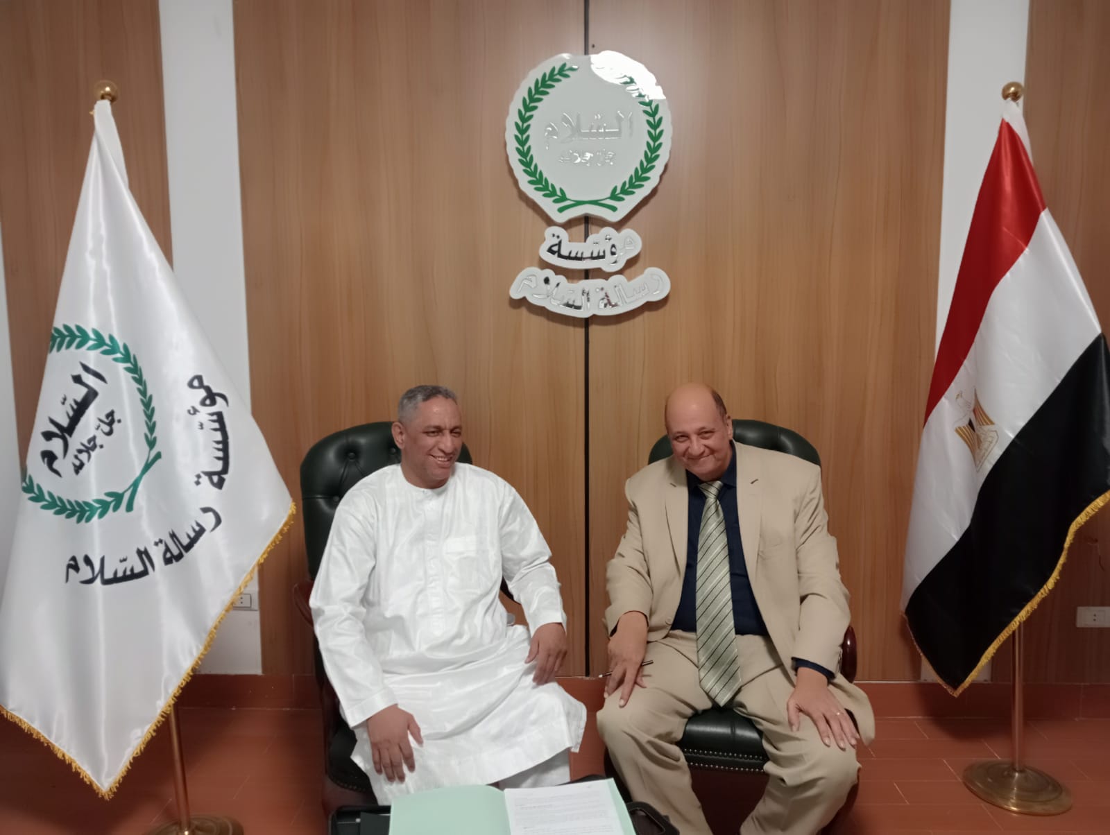 تنفيذا لتوجيهات المفكر الأستاذ على محمد الشرفاء الحمادى مؤسس مؤسسة رسالة السلام وبحضور الاعلامى الأستاذ مجدى طنطاوى المدير العام للمؤسسة انعقد اجتماع فى مقر المؤسسة بالقاهرة حيث التقى د. معتز صلاح الدين رئيس مجلس أمناء مؤسسة رسالة السلام بالقاهرة مع الاستاذ الحاج محمد الامين مدير مكتب مؤسسة رسالة السلام بأسبانيا والمشرف على أنشطة المؤسسة بأوروبا الذى يزور القاهرة حاليا