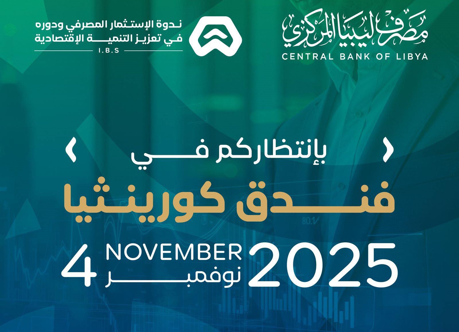 ينظم مصرف ليبيا المركزي يوم الثلاثاء الـ 4 من شهر نوفمبر القادم ندوة بعنوان ” الاستثمار المصرفي ودوره في تعزيز التنمية الاقتصادية ” بمشاركة نخبة من الخبراء والمختصين في الشأن الاقتصادي والمصرفي.