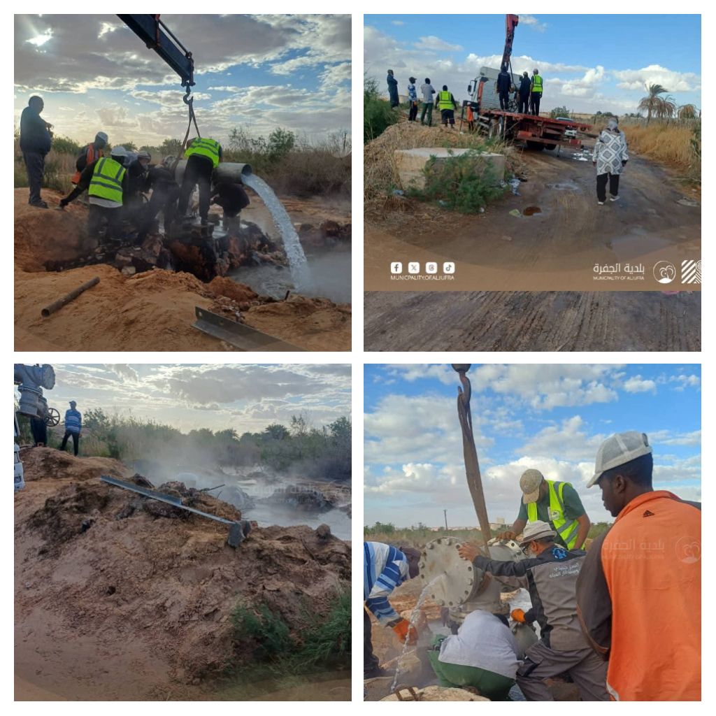 وال الجفرة : السيطرة على تسرب مياه فوار السباخ بمنطقة الصوان في ودان .