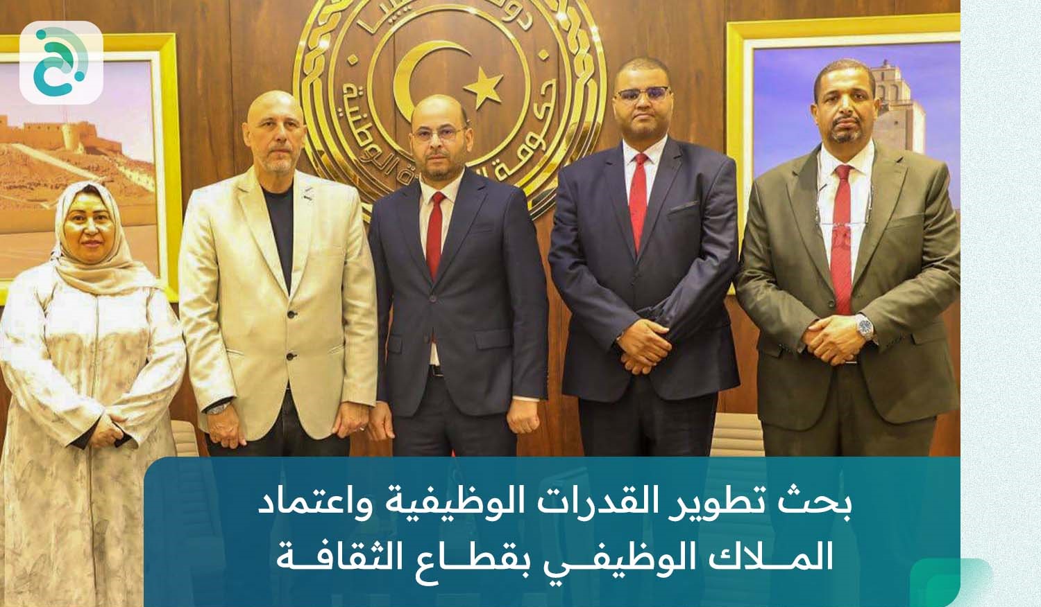بحث وزيرا الخدمة المدنية، عبد المنعم إبراهيم، والثقافة، سالم العالم، اليوم الخميس، مع عدد من المسؤولين بالوزارتين، سبل تطوير القدرات الوظيفية وتنظيم الملاك الوظيفي بقطاع الثقافة.