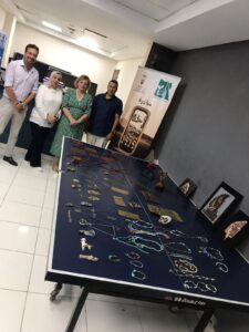 و مهارات التشكيل بالخرز والأسلاك المعدنية، الحفر على النحاس، الأكسدة، التلميع، والطلاء بالذهب والفضة